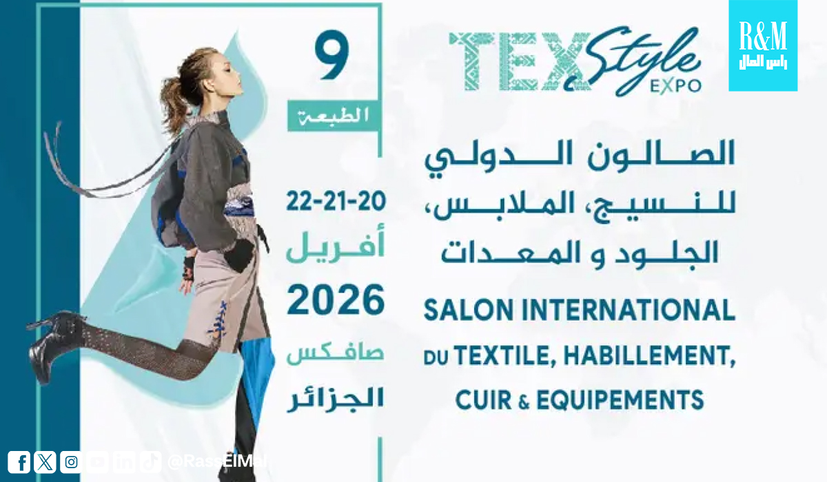 تيكستيل إكسبو 2026: منصة دولية لصناعة النسيج تنطلق فعاليات الصالون الدولي للنسيج “تيكستيل إكسبو” في طبعته التاسعة، خلال الفترة الممتدة من 20 إلى 22 أفريل 2026، بمشاركة أكثر من 200