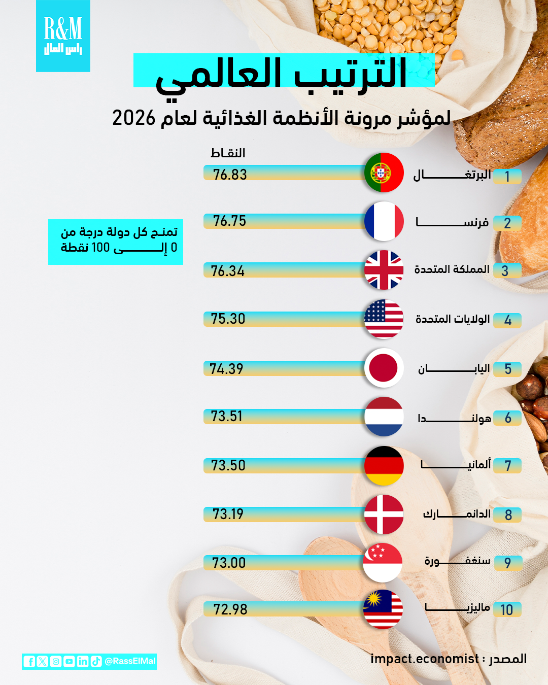ويعتمد المؤشر على 71 معيارًا كميًا ونوعيًا، مستندًا إلى بيانات مؤسسات دولية مثل البنك الدولي ومنظمة الأغذية والزراعة ومنظمة الصحة العالمية.