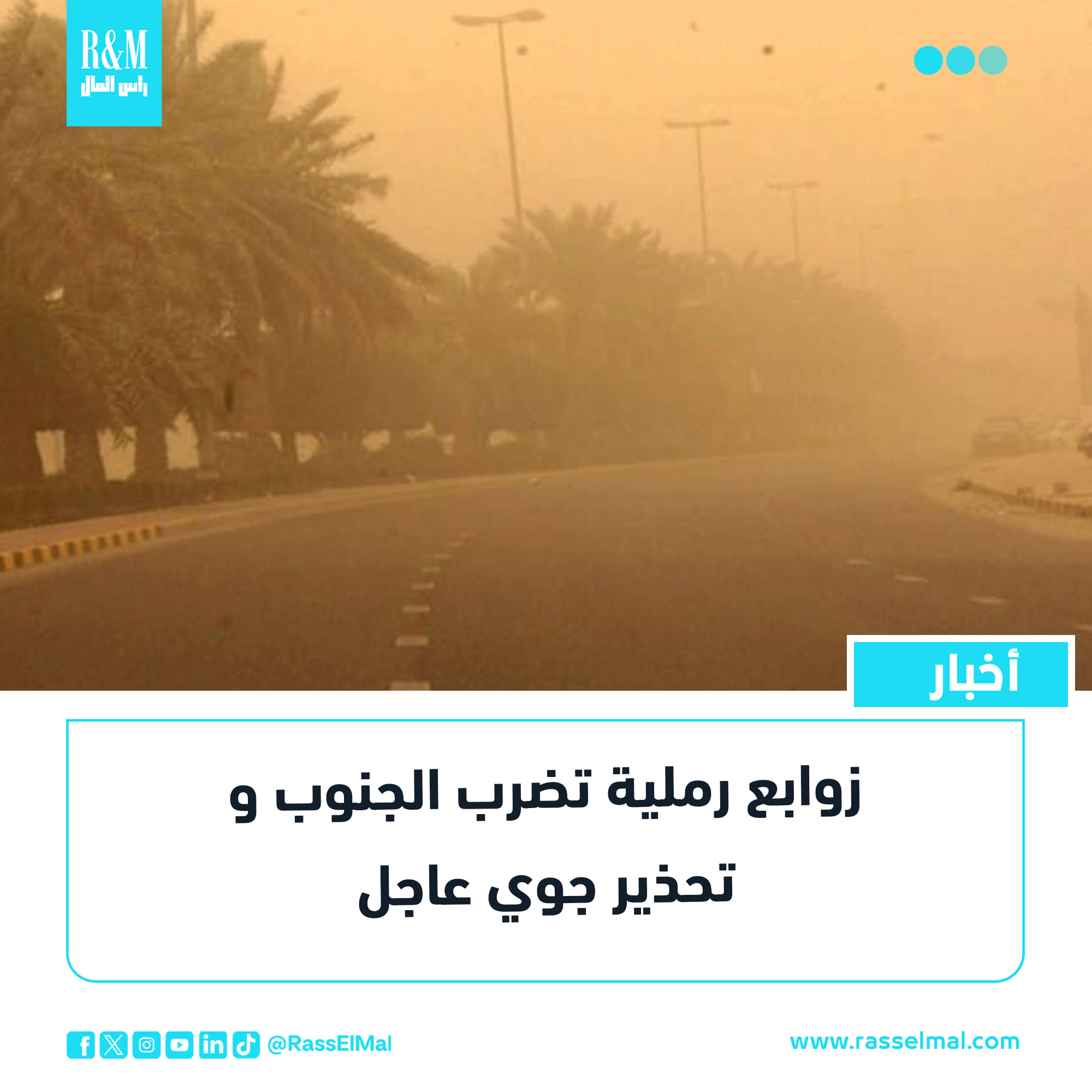 أصدر الديوان الوطني للأرصاد الجوية، اليوم الإثنين، نشرية خاصة حذّر فيها من زوابع رملية تمس عددا من الولايات الجنوبية، داعيا إلى توخي الحيطة والحذر